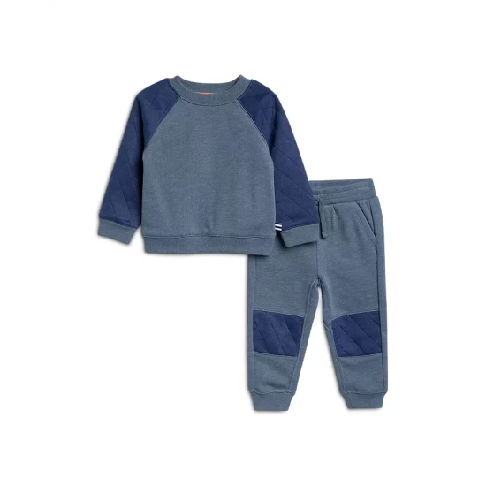 - Top: crewneck, pullover style, quilted long sleeves, ribbed neckline, cuffs and hem