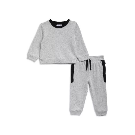- Pants: elasticized waist with drawstrings, ribbed cuffs, pull-on style