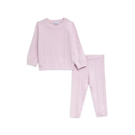- Leggings: ribbed waistband, pull-on style, cable-knit heart-and-stripe pattern, ribbed cuffs