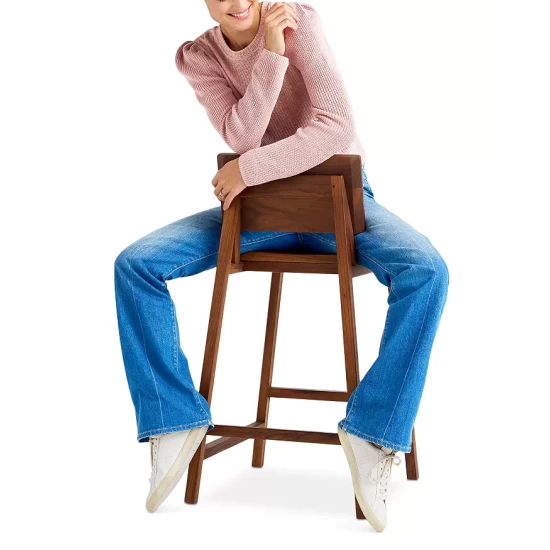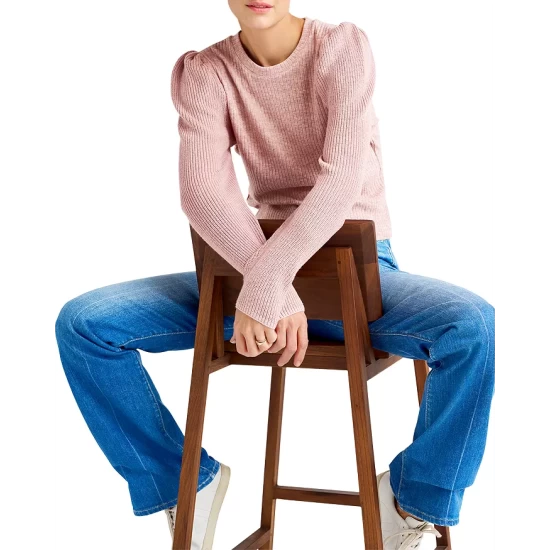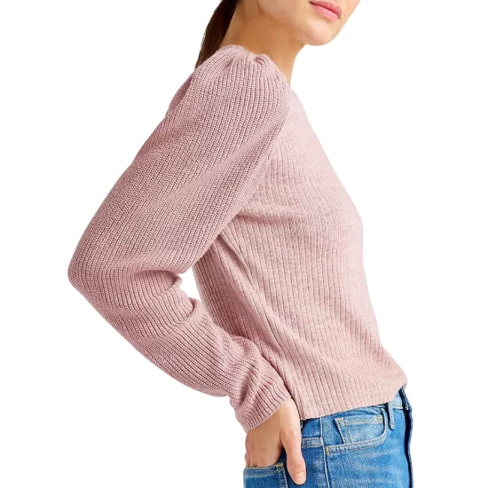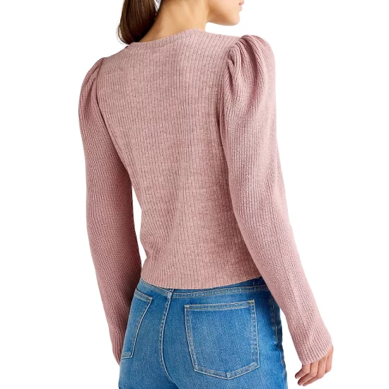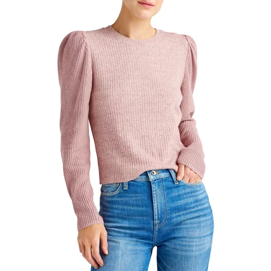 - Contrast-rib knit long puff sleeves